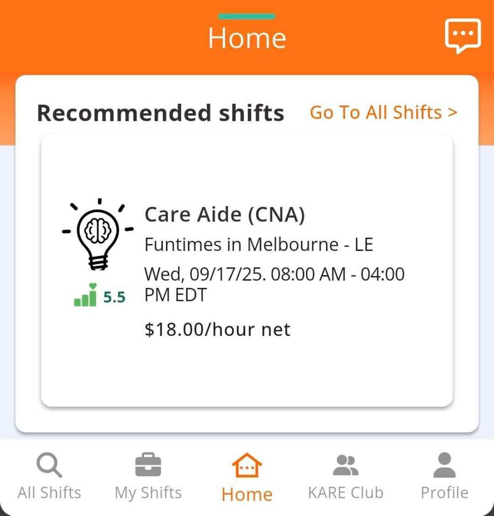The app shows up to 3 shifts based on your preferences like pay rate, favorite Communities and availability.