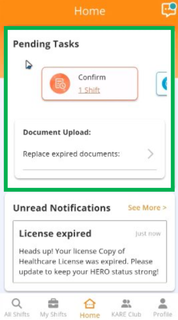 The new Home Screen in the HERO App helps you stay organized and find shifts that match your preferences. You can track your earnings, see recommended shifts, complete tasks, and manage notifications. All in one place!